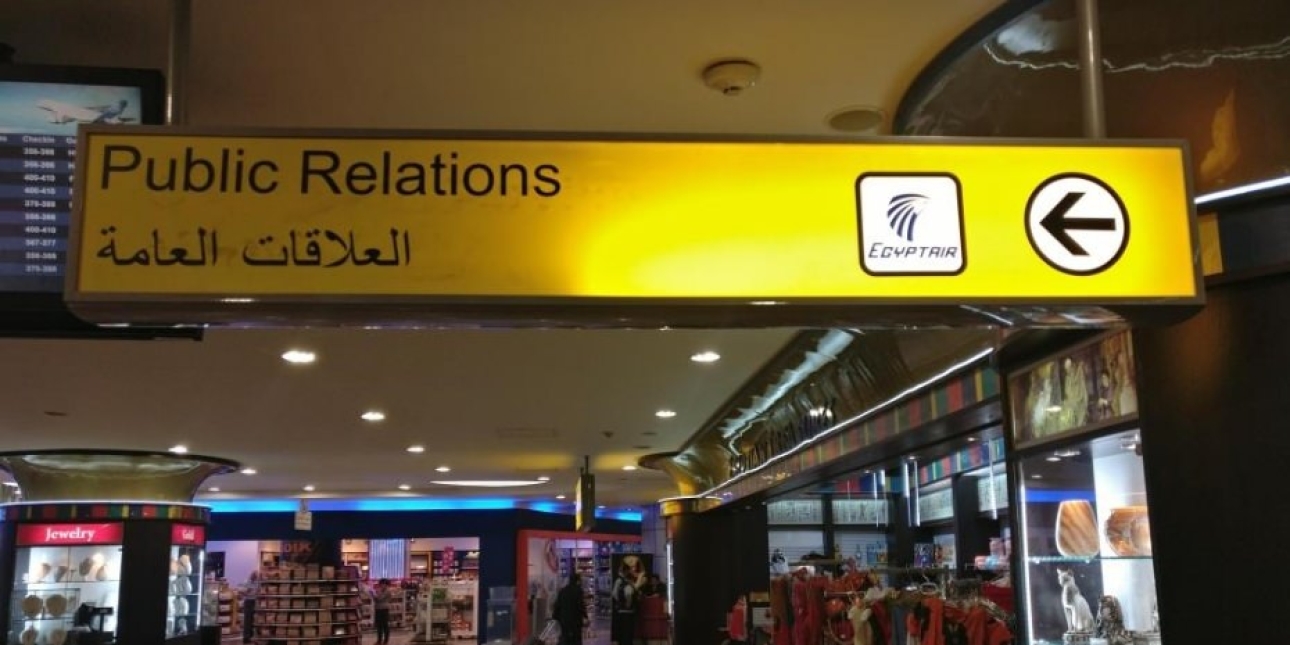 It sounds good in principle. A sign in Cairo airport directs passengers to Egypt Air Public Relations. In practice, the desk turns out to be manned by a customer service team.